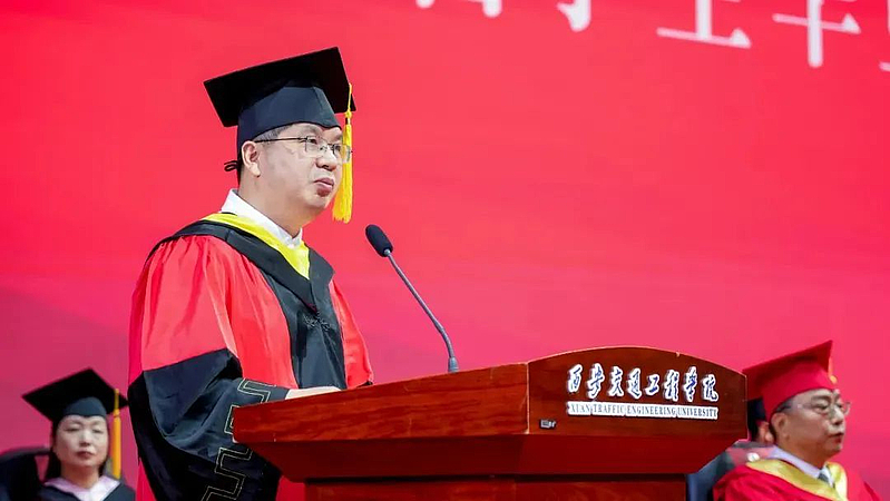 教师代表廖世勇教授为全体毕业生送上祝福与三点建议。一是以轨为尺,在专业沃土中扎根生长。坚守“轨连天下、道载众生”的信念,争当交通强国征程上的坚定追梦人。二是以道为志,勇担时代赋予的责任担当。走出校门,以“自身硬、靠得住、扎得稳”的道钉精神成为祖国交通事业的建设者。三是以心为舵,永续人生正能量。永葆探索热忱、坚守安全底线、厚植家国情怀,勇做民族复兴的奋进人。