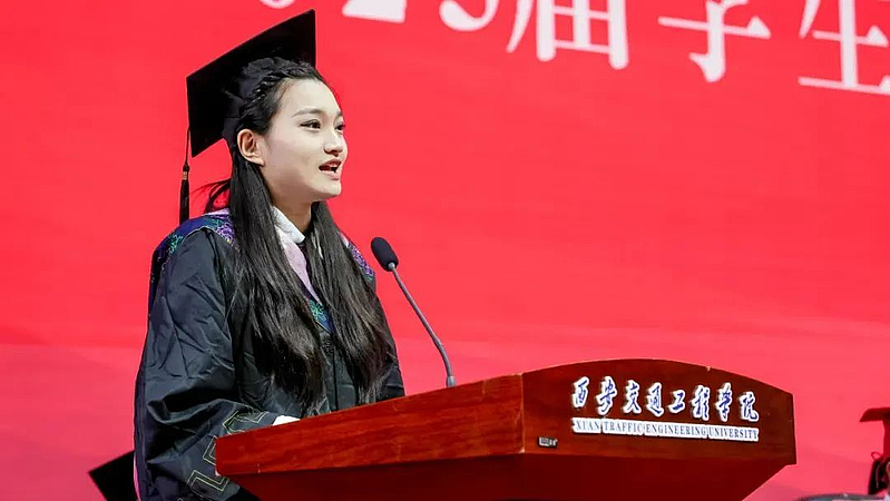 毕业生代表人文与管理学院张芸若同学发言