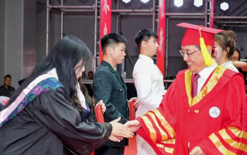 校长曹庆年向全体教职员工,向顺利完成学业的全体毕业生,致以热烈的祝贺与真挚的祝福,向为同学们的成长与成才付出辛勤努力的教师们,向为你们的学习生活提供坚实支持的工作人员,致以崇高的敬意,向所有关心、支持学校建设与发展的家长们、校友们,表达衷心的感激之情。