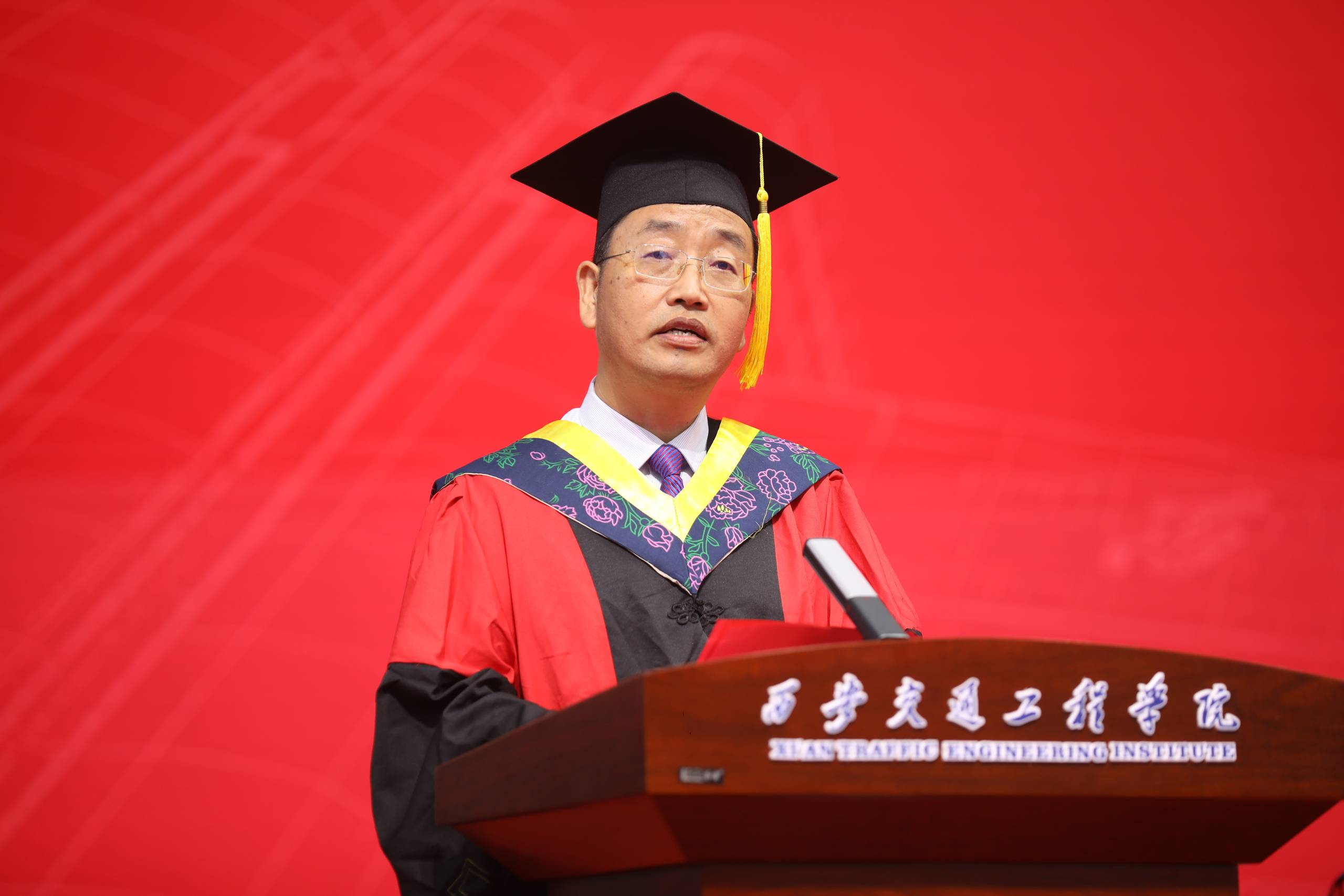 校长刘建朝以“传承交院精神 成就国家栋梁″为题发表致辞,他代表理事长张晋生教授、代表学校学位评定委员会和学校党政领导班子,以及全体教职员工,向圆满完成学业的全体毕业生,表示热烈的祝贺和诚挚的祝福!他表示,同学们今天就要毕业了,将开启人生新的征程,母校将永远牵挂着你们,关注着你们,期待着你们!他希望同学们一要坚守理想信念,永葆家国情怀。二要坚守做人做事之道,走好人生每一步。三要坚守奋斗之志,永葆坚韧和执着。四要坚守西交院大学精神,再次进入丰富多彩的社会大学堂,把自己锻造成为国家栋梁。