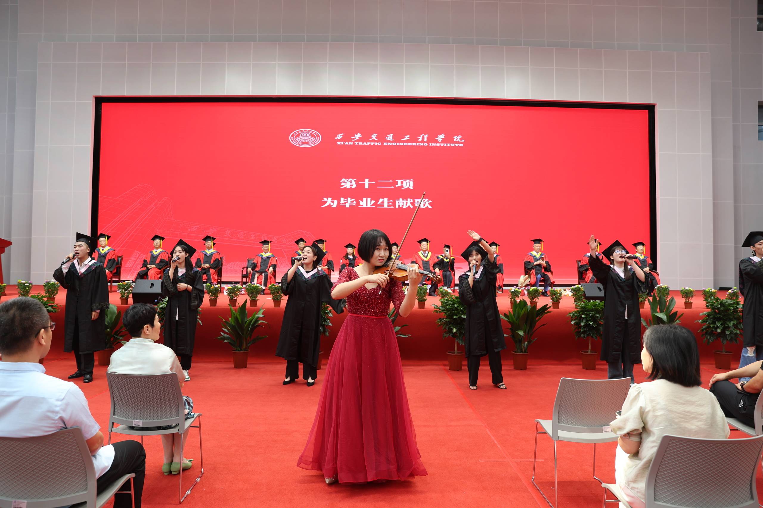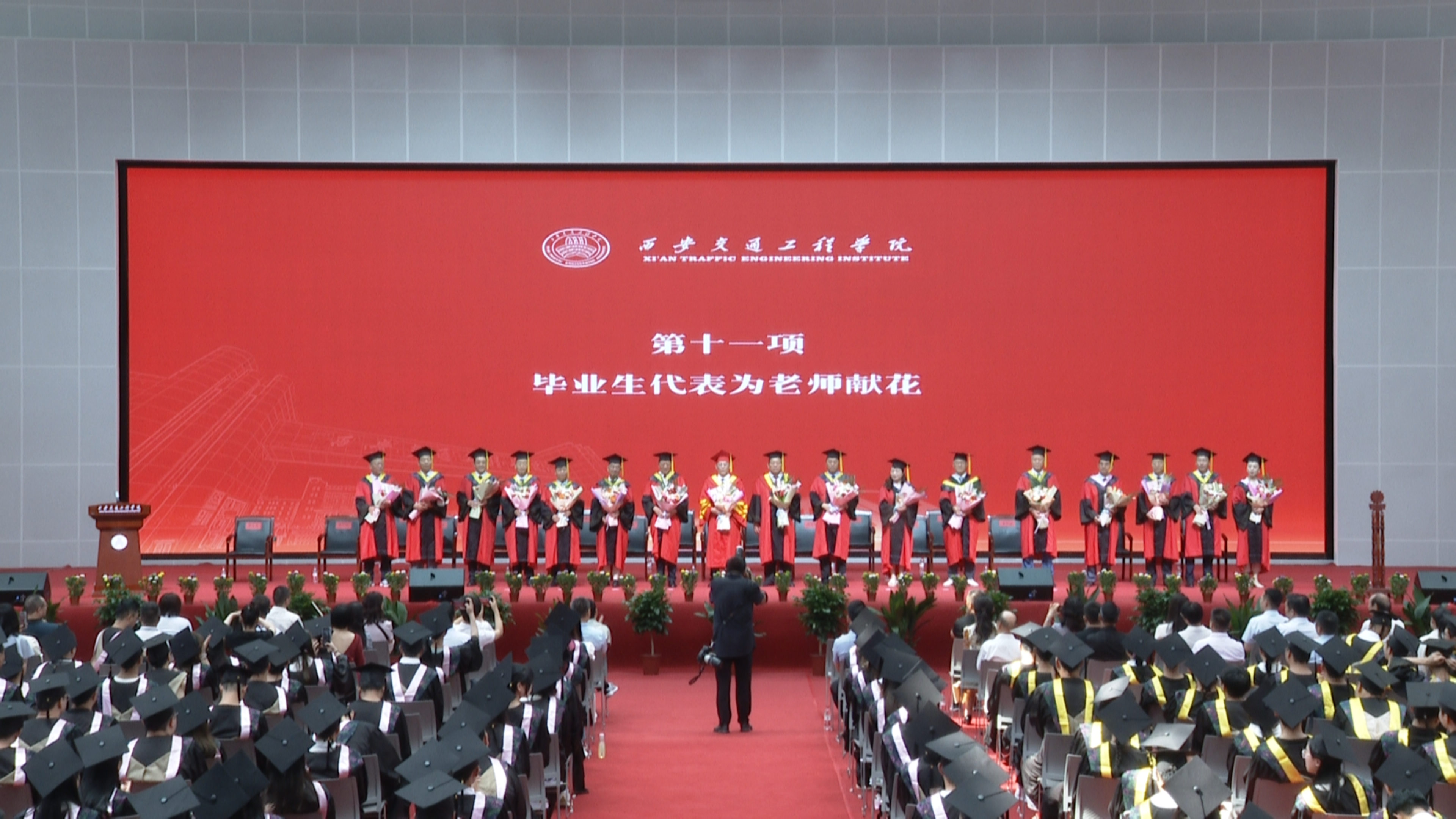 典礼上,毕业生代表怀着感恩之情手捧鲜花走上主席台,为学位评定委员会全体成员献花并深情拥抱;接着为毕业生们现场献歌,演唱歌曲《少年》、《飞云之下》;现场全体毕业生集体宣誓,立下铮铮誓言,传承西交院大学精神,要用智慧和才华肩负起民族复兴的使命,用青春和热血承担起国家富强的责任。