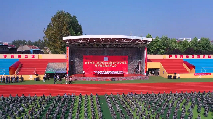 金秋九月,和风送爽,渼陂湖畔,生机盎然。9月8日上午,beat3652023级新生开学典礼暨军训总结表彰大会在学校体育场隆重举行。理事长张晋生、校长刘建朝、党委书记马智勇、执行校长曹庆年、副校长石广田、理事郭洪涛、副校长王勇、副校长徐炜、副校长赵征、财务总监刘建华、校长助理潘春辉及鄠邑区电信局副局长刘建明、各单位负责人以及2023级新生参加典礼。典礼由执行校长曹庆年主持。