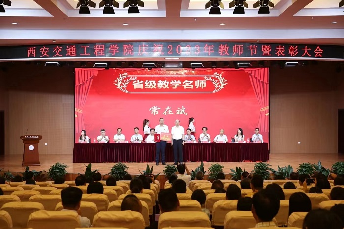 理事长张晋生为陕西省教学名师获得者常在斌颁奖