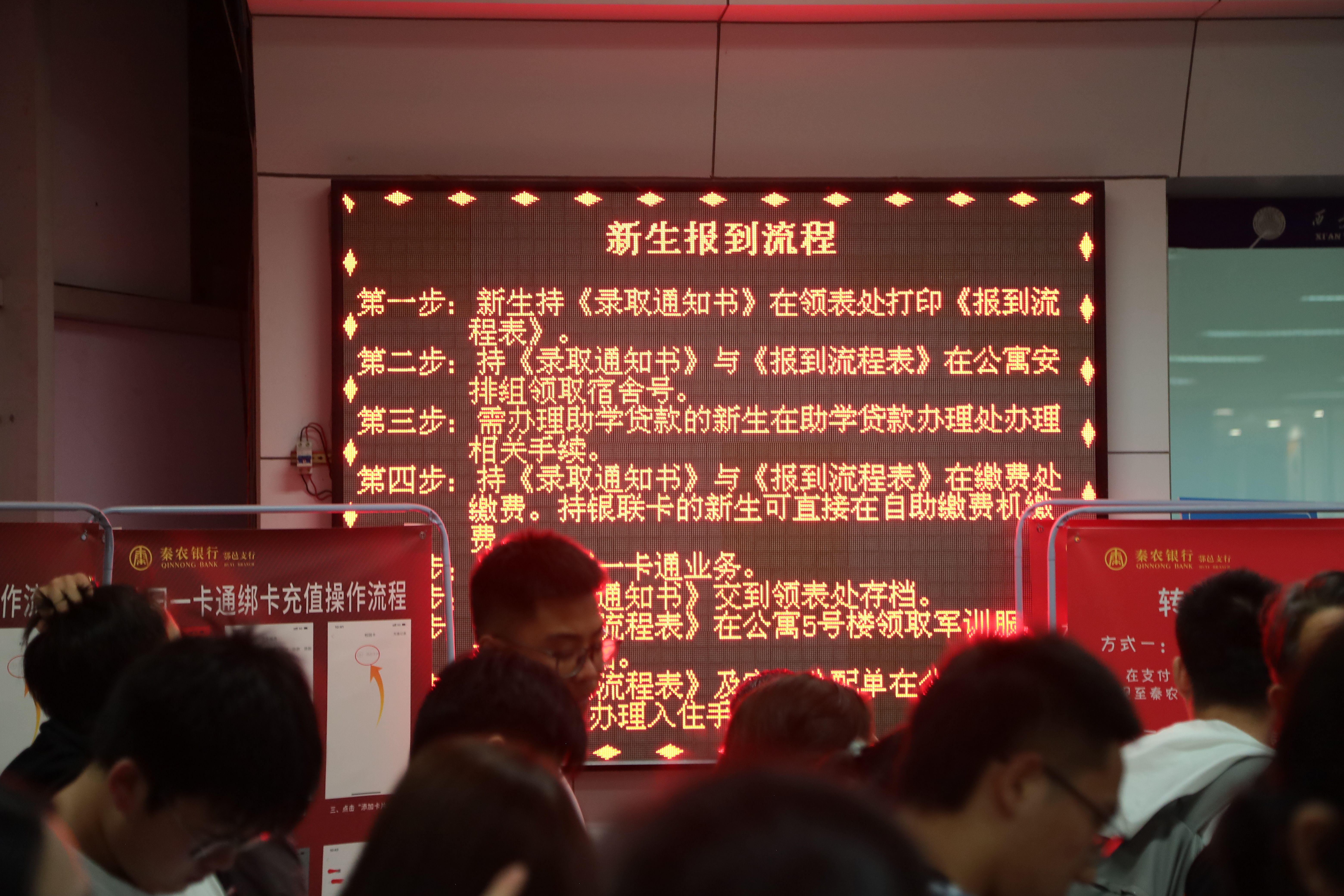 为方便新生到校,学校在西安咸阳国际机场、西安火车站、西安北站、鄠邑站设立接站点。招生处、各二级学院组织的百余名青年志愿者为同学们热情服务,负责维持区域秩序、行李搬运、帮助解答新生问题。来自汉中的新生小刘告诉我们,“我是一个人来校报到的,长大了就该自己出来闯一闯。对独自在外求学的我来说,学长学姐的热情关怀以及学校做的精心迎新准备,都让我感到十分温暖。在大学我希望能努力利用好时间,好好规划未来四年,学到更多的专业知识,为以后进入社会打下坚实的基础。”