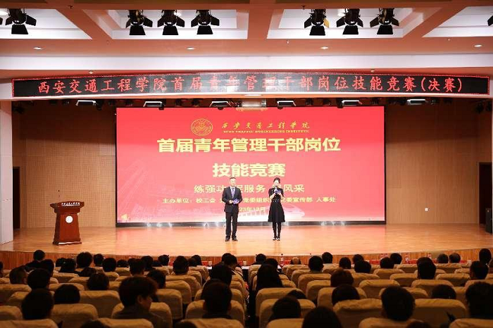 12月6日下午,由学校工会联合党政办、党委组织部、党委宣传部和人事处共同主办的首届青年管理干部岗位技能竞赛(以下简称“青管赛”)决赛在学校学术报告厅举行。陕西省总工会副主席、党组成员王永岗、陕西省教科文卫体工会副主席夏明文、王薇、三级主任科员张昆,以及西安交大人文学院党委书记纪梦然、西安交大口腔医院党委书记腾晶、西北工业大学工会常务副主席杨永祥、西安石油大学工会主席袁玎等上级工会和兄弟高校领导莅临活动。beat365理事长张晋生、校长刘建朝、党委书记马智勇、执行校长曹庆年、副校长石广田、王勇、徐炜、赵征、财务总监刘建华、校长助理潘春辉参加活动,全体中层干部、校工会委员会委员、机关处室全体干部、各二级学院管理干部、学生代表共计400余人参加活动。活动特邀西安交通大学第二附属医院工会寇筱琛与beat365公共课部聂磊老师一同主持。