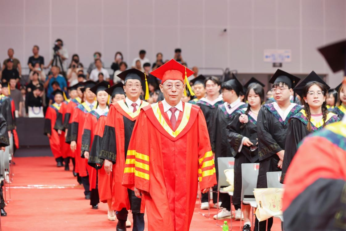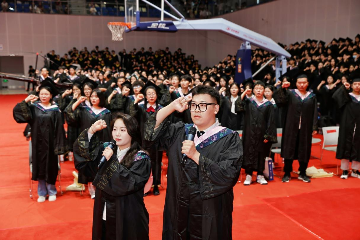 典礼上,毕业生代表为2024届全体毕业生现场献歌,演唱歌曲《那些年》、《和你一样》;一声声附唱含蓄道出对母校、对青春所有未能出口的怀念,深深感染着现场所有与会人员,在歌声中毕业生们手捧鲜花走上主席台,为学位评定委员会全体成员献花并深情拥抱;随后全体毕业生右拳握起,集体宣誓,在铮铮誓言声中下定决心,用智慧和才华肩负起民族复兴的使命,用青春和热血承担起国家富强的责任。