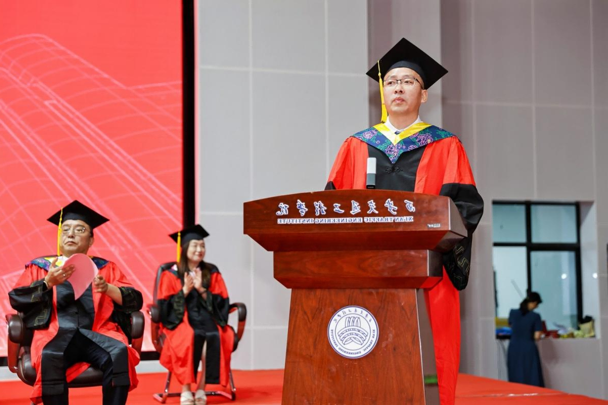 曹庆年校长以“以青春之我 书写青春之华章”为题发表致辞,他代表理事长张晋生教授、代表学校学位评定委员会和学校党政领导班子,以及全体教职员工,向圆满完成学业即将走向社会的全体毕业生寄以深切的祝福与嘱托。他指出,面对当前新一轮科技革命蓬勃发展,世界百年未有之大变局加速演进,唯有以自身努力的确定性才能战胜时代的不确定性。他希望同学们一要锤炼品德、提升自我,做时代的智慧者;二要终身进取,向阳而生,做时代的奋斗者;三要坚持学习,勇于探索。以自信之姿继续兴致盎然地与世界交手,母校永远是你们的精神家园和坚强后盾!