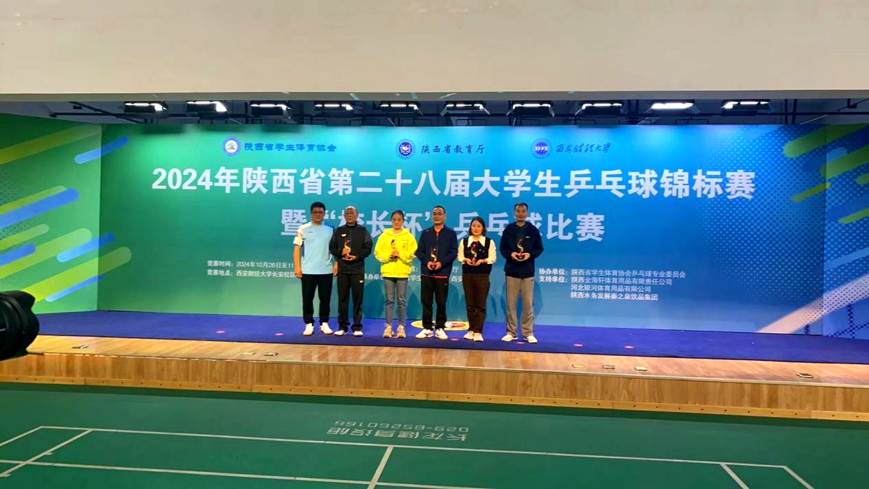 10月27日,由陕西省教育厅主办,陕西省学生体育协会、西安财经大学承办的2024年陕西省第二十八届大学生乒乓球锦标赛暨“校长杯”比赛在西安财经大学举办,理事长张晋生教授带领beat365代表队获得“校长杯”比赛乙组团体赛冠军。