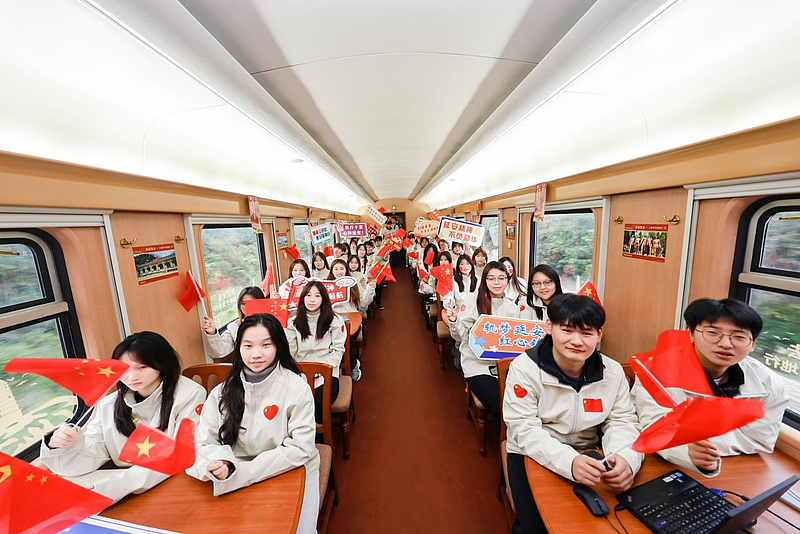 思政课后,师生们开展红歌传唱活动,《歌唱我的祖国》《南泥湾》等经典旋律此起彼伏。悠扬的歌声与列车的轰鸣声交织,仿佛跨越时空,与延安时期的革命先辈隔空对话,为红色实践注入了饱满的精神动能。