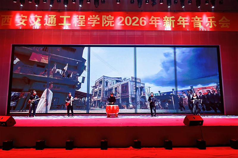在旋律昂扬、节奏明快的《金蛇狂舞》演绎中,将新年的喜庆氛围直接拉满,也为压轴原创歌曲《铁轨上的星光》铺垫了情感基调。执行理事张慧为该歌解读讲话中表示,星光是全体西交院人共同的信念,不张扬却自有力量,是我们对新年的美好期许。更是我们对明年教育部本科教学合格评估的庄严承诺与必胜信心。每一个音符都藏着交院人的坚守与向往。
