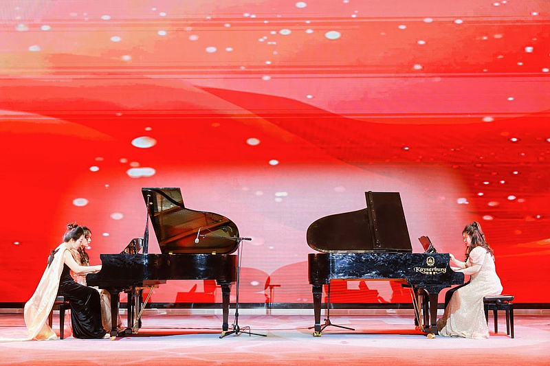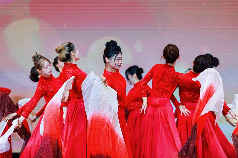 舞蹈《光亮》以现代舞语汇诠释了在逆境中寻光的主题,肢体舒展间传递出破茧成蝶的力量。打击乐《云之南》用排鼓等乐器模拟傣家竹楼的雨、洱海的风,展现非遗文化的现代表达。音乐学师生新编《山河图》、民乐合奏《射雕英雄传》的快意恩仇,体现了学校的美育教育通过美美与共,和而不同的形式表达。