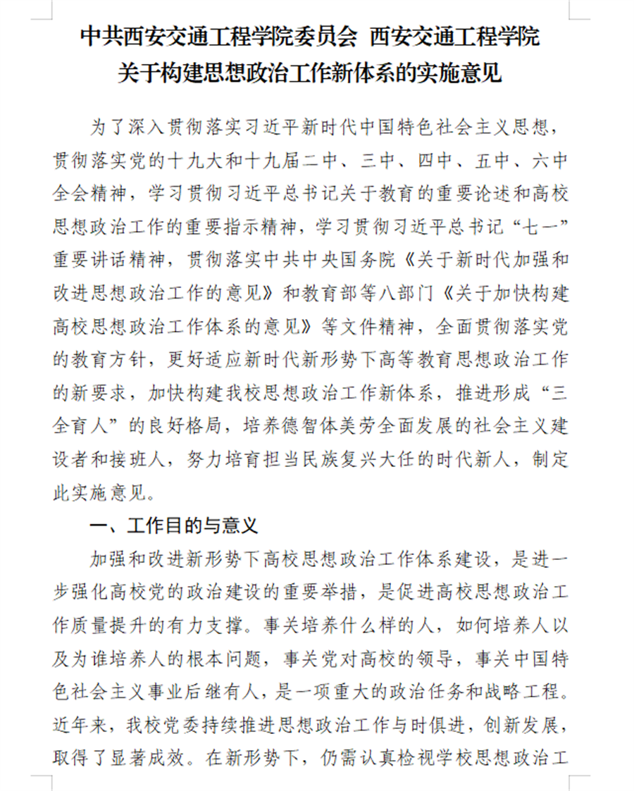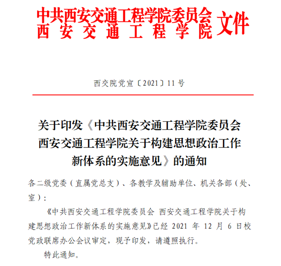 关于印发《中共beat365在线唯一官网委员会 beat365在线唯一官网关于构建思想政治工作 新体系的实施意见》的通知