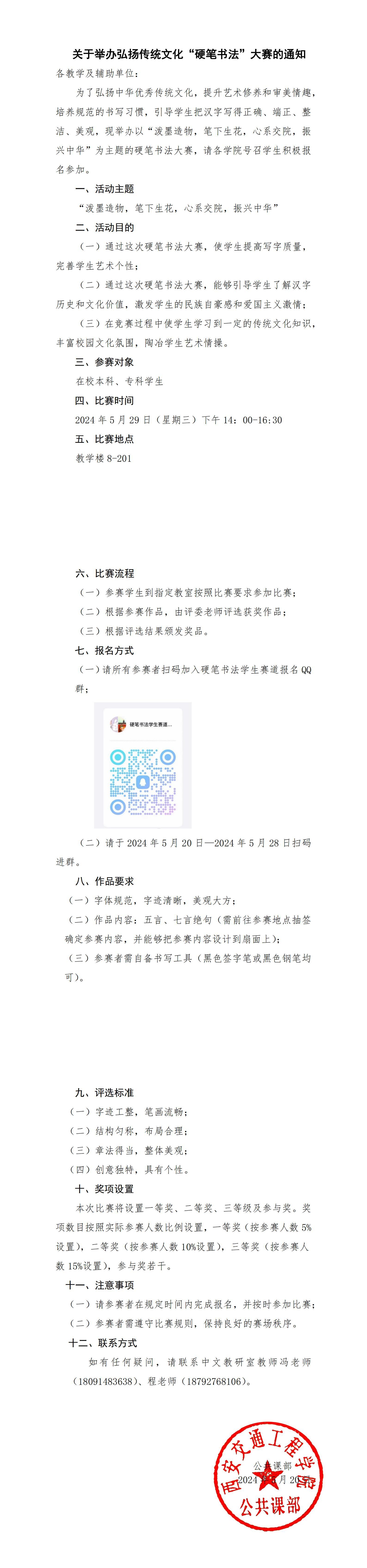 关于举办弘扬传统文化“硬笔书法”大赛的通知