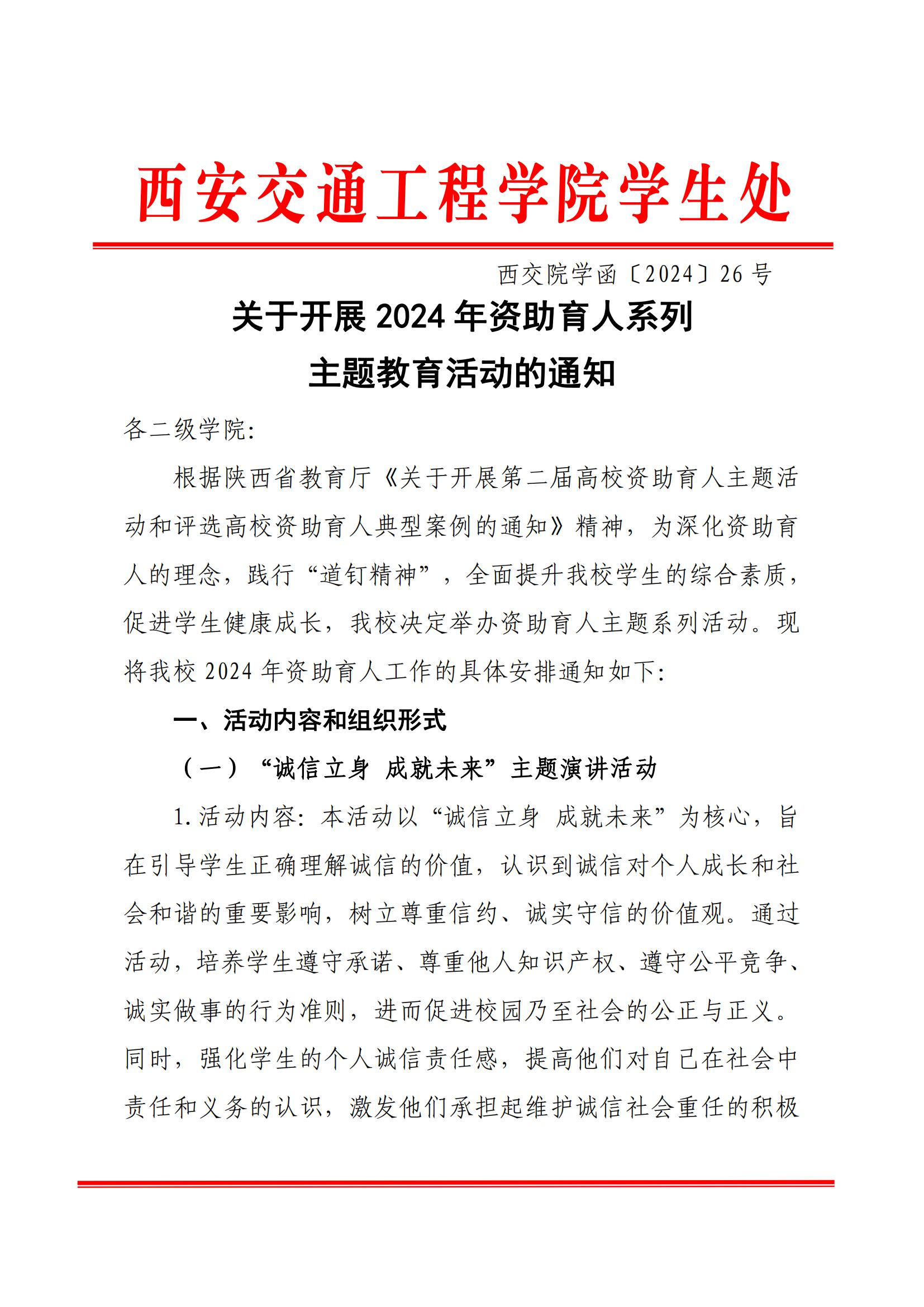 关于开展 2024 年资助育人系列主题教育活动的通知