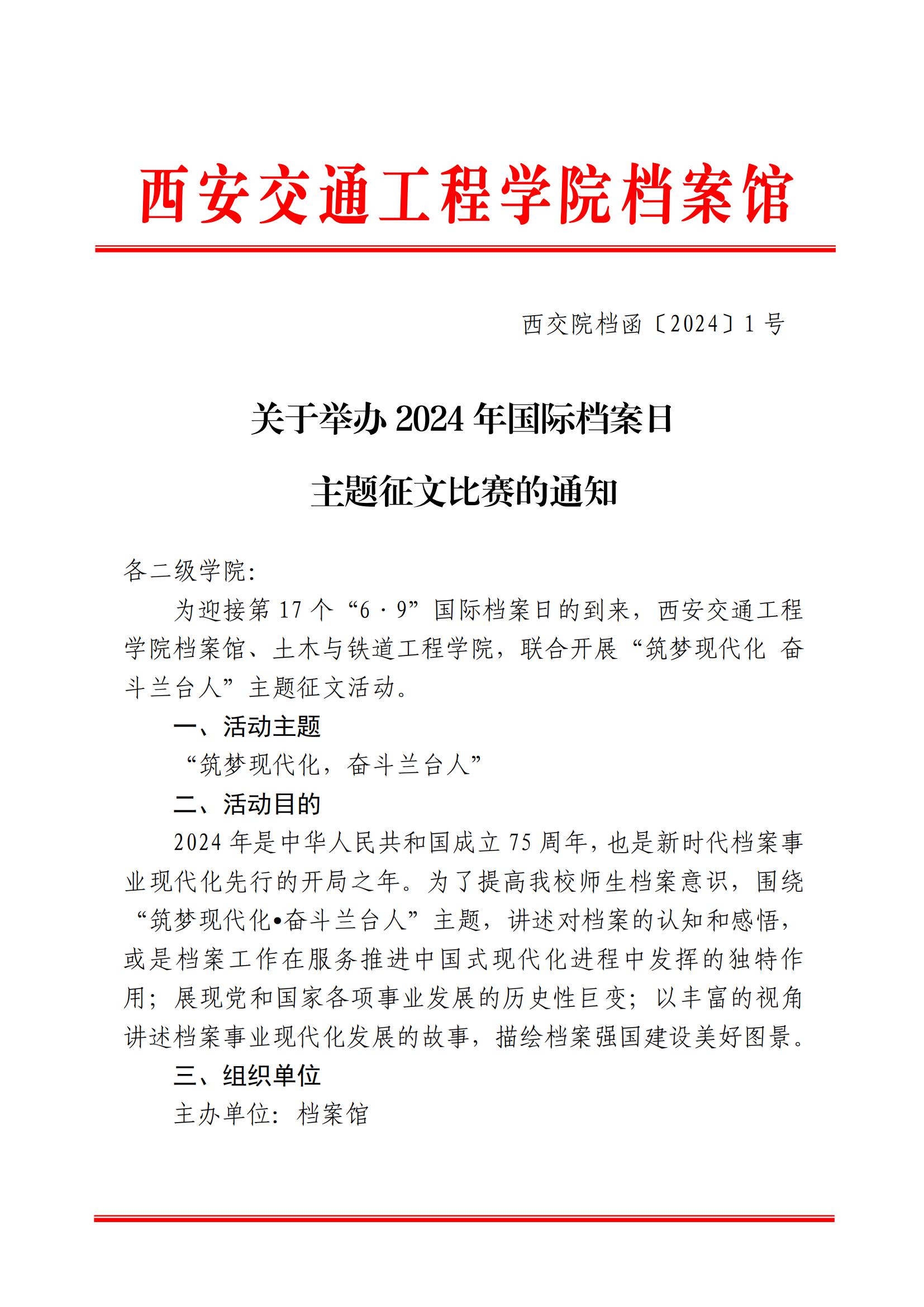 关于举办 2024 年国际档案日主题征文比赛的通知