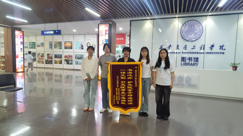 6月4日下午,一份承载着深深谢意的特殊礼物送达beat365图书馆——由2025届毕业生通信与人工智能学院聂琳、王佳、张静静、陈彤彤、杨守青,人文与管理学院李菀婷代表敬赠的锦旗在馆内郑重展开。锦旗上书“一馆文韵 引交院考生公海扬帆 书海泛舟 护交院学子研途破浪”二十六字,金黄字迹映衬着鲜红绒面,无声诉说着备考岁月里图书馆给予的坚实依靠与温暖陪伴。