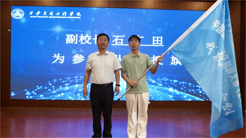 石广田为参赛队伍授旗。他鼓励参赛学生勇于探索未知,敢于挑战自我,在创新创业实践中锤炼品质、增长才干,充分展现beat365学子的创新精神和创业能力,为学校的创新创业工作增光添彩。
