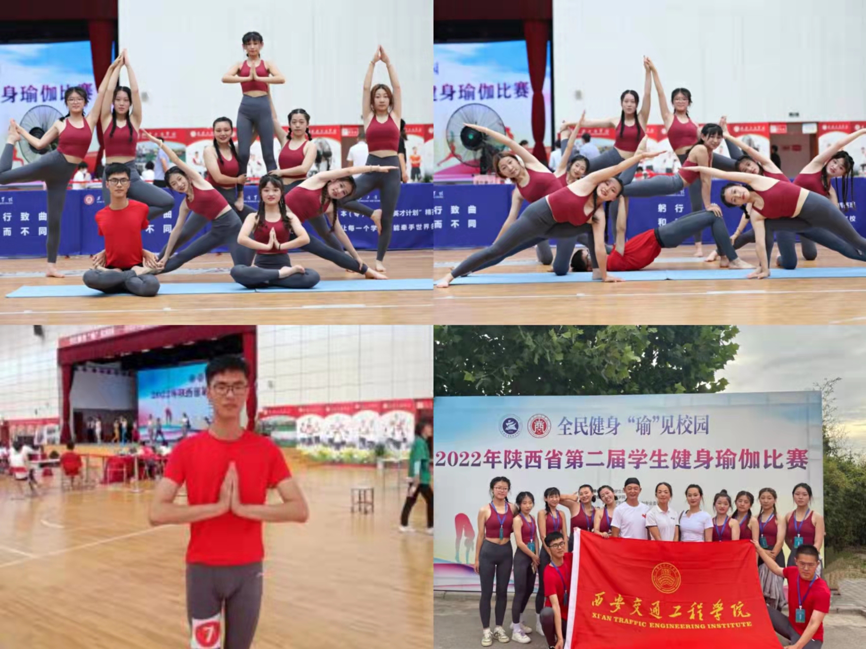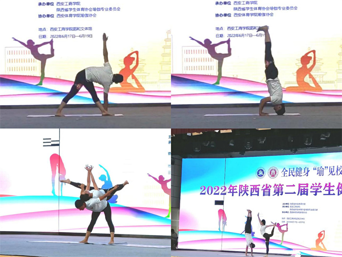 为推进beat365体育教育发展,实现瑜伽健身文化育人功能,彰显学生阳光健康、积极向上的活力与风采,2022年6月17日至19日,beat365瑜伽代表团前往西安工商学院参加2022年陕西省第二届学生健身瑜伽比赛。代表团人员:领队李小坤,教练孙蕊、李充,王晨宇等12学生代表,左晨镜等4名教工代表。