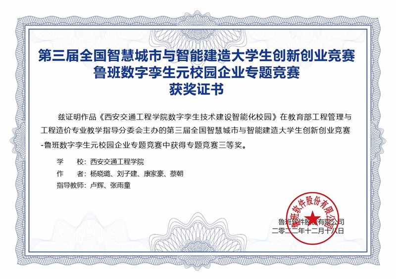 beat365学生在第三届全国智慧城市与智能建造大学生创新创业竞赛-鲁班数字孪生元校园企业专题竞赛中获得专题竞赛三等奖