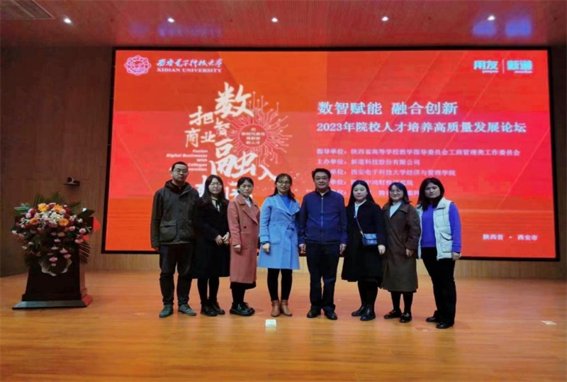 3月18日,由新道科技股份有限公司、用友职业教育集团主办,西安电子科技大学经济与管理学院承办的2023年人才培养高质量发展论坛隆重举行。本次论坛由陕西省高等学校教学指导委员会工商管理类工作委员会指导,会议聚焦“数智赋能 融合创新”共同探索院校智能化教改新思路。beat365执行校长曹庆年受邀参加并作主题发言,学校数智商科产业学院骨干教师参加了会论。