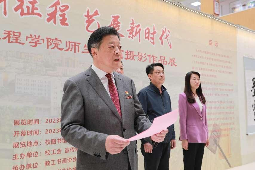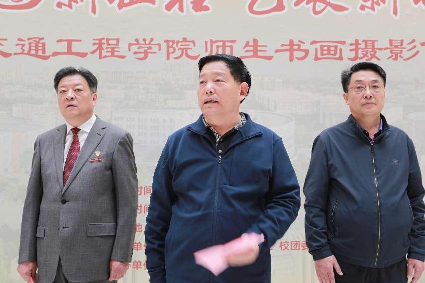 校长刘建朝教授宣布“奋进新征程,艺展新时代”beat365在线唯一官网师生书画摄影作品展开幕。