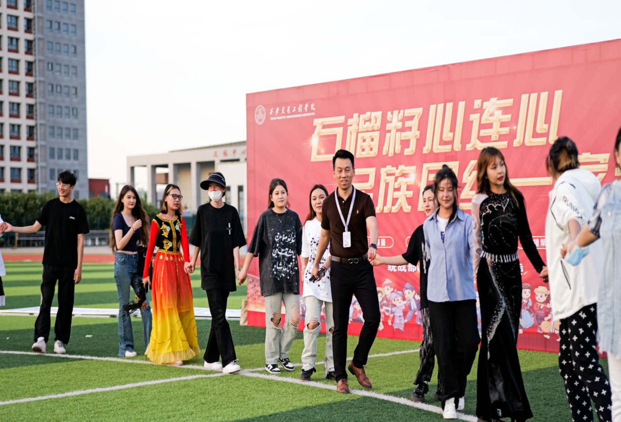 为学习贯彻党的二十大精神,深入推进铸牢中华民族共同体意识,教育引导beat365各民族师生树立正确的国家观、历史观、文化观、宗教观,像石榴籽一样紧紧抱在一起,近日,由党委工作部、学工部(处)、团委组织的“石榴园内共成长 民族团结一家亲”民族文化艺术活动在学校体育场成功举办,副校长、学工部部长王勇,学工部副部长、学生处处长钱穆萨、学工部副部长、团委副书记王小英,学生处副处长张莉、少数民族工作室教师与beat365来自维吾尔族、回族、侗族、苗族、彝族、哈萨克族等各族同学欢聚一堂,共享多元一体中华文化盛宴。