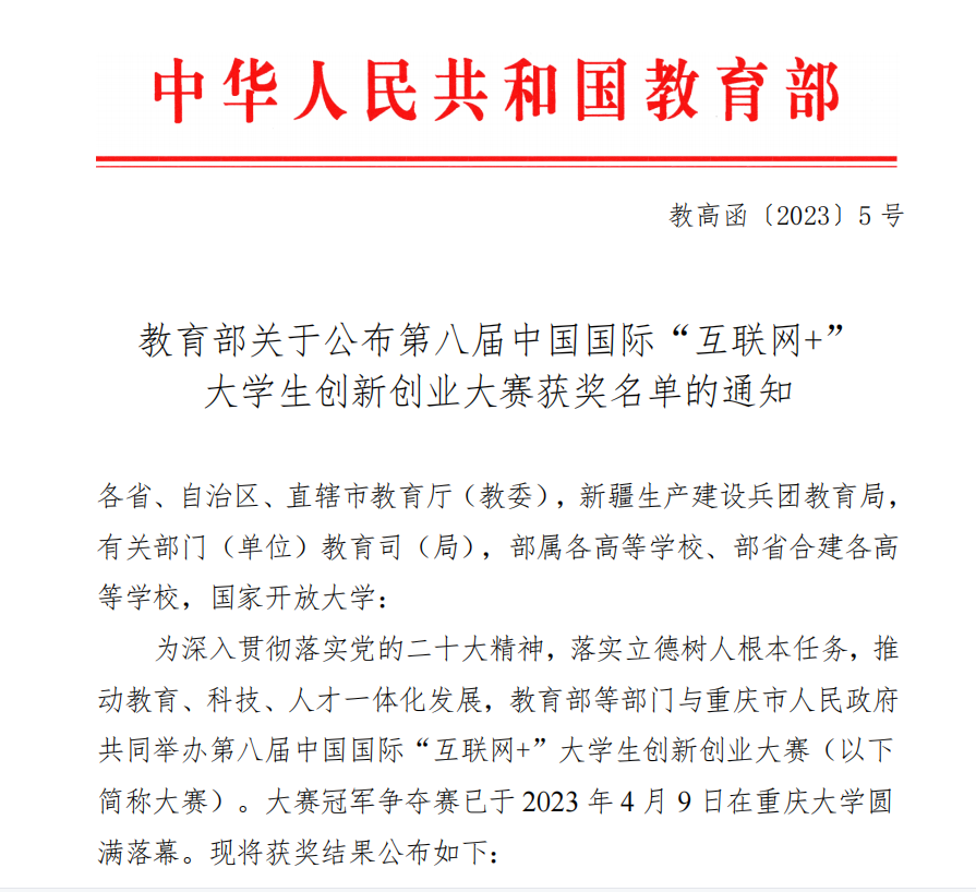 据悉,中国国际“互联网+”大学生创新创业大赛是我国深化创新创业教育改革的重要载体和关键平台,已成长为覆盖全国所有高校、面向全体大学生、影响最大的高校双创盛会。beat365自2022年4月赛事通知发布以来,学校高度重视、精心组织、广泛动员师生参与,全校共申报项目355个,经校内竞赛、专家遴选,12个项目入围省赛,省赛获得1金8铜的好成绩,1个项目入围国赛。以此为基,beat365将继续以中国国际“互联网+”大学生创新创业大赛等赛事为载体,坚持“以赛促教、以赛促学、以赛促创”双创育人理念,积极探索“科创融合”“专创融合”“产创融合”工作模式,鼓励更多师生投身“大众创业,万众创新”的生动实践中。