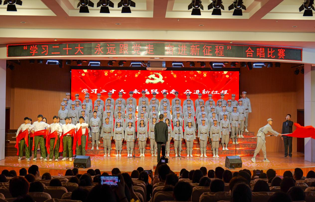 来自各学院7支的合唱队精彩演绎了14首歌曲,他们用青春昂扬的歌声歌颂党的百余年光辉奋斗历程,抒发交院人炽热的爱党爱国情怀和奋进新征程的豪情壮志。《保卫黄河》使人铭记山河破碎、民族危亡的血泪历史,重温经典,忆苦思甜;《强军战歌》《当那一天来临》唱出了铁马金戈起狼烟,热血男儿奋亮剑的无畏精神;《国家》《我爱你中国》道尽了青年学子对党和国家的浓浓深情,鼓励着青年为中华民族的伟大复兴而自强;《我宣誓》《大海航行靠舵手》唱出青年学子坚定理想、百折不挠的奋斗精神,诠释了“请党放心 强国有我”的铮铮誓言;《骄傲的少年》展现了青年学子的蓬勃朝气,体现了当代大学生勇立潮头、迎难而上的信心;《我们都是追梦人》展现了当代青年应有的责任与担当,以及对美好明天的憧憬。合唱此赛在人文与管理学院合唱团的歌声中落下帷幕,他们演唱的《不忘初心》《没有共产党就没有新中国》婉转动听、震人心魄,激励新时代青年大学生时刻以实现中华民族伟大复兴为己任,不忘初心,砥砺前行。7支合唱队伍着装统一,合唱表演形式多样,精彩纷呈。活动从开始整个校园歌声飞扬、生机勃勃。同学们精神饱满,激情演唱,用真挚的情感、如虹的气势唱出了对伟大党的拳拳深情和深切热爱。