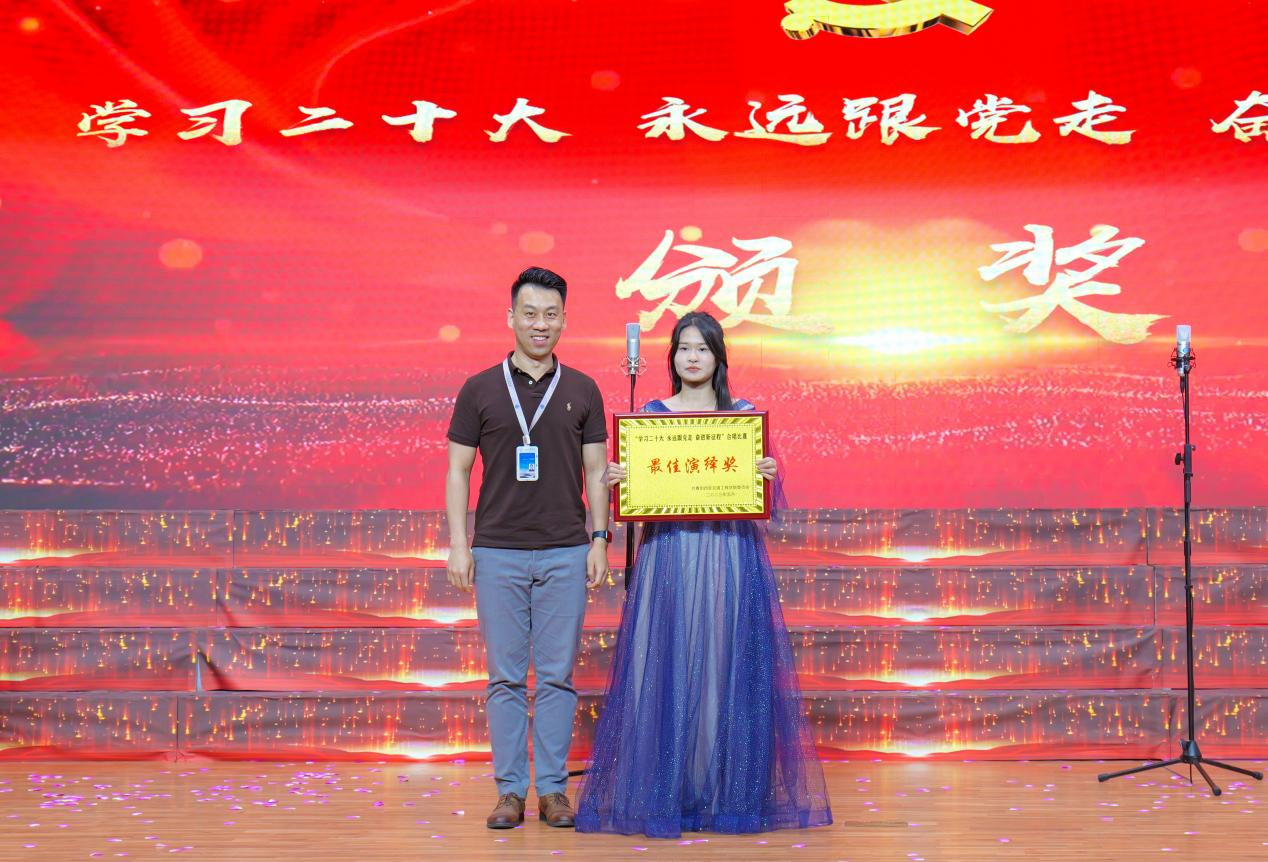 经过评委的认真评分,交通运输学院获得了一等奖,现代技术学院、中兴通信学院获得了二等奖,人文与管理学院、机械与电气工程学院、土木工程学院获得三等奖,人文管理学院合唱团获得最佳演绎奖;陈豪华、秦鑫、黄晶等7名教师获得优秀指导教师;王建鹏、冯佳文、黄莉蓉3名同学获得最佳指挥奖,在场领导们为获奖集体和个人颁奖。