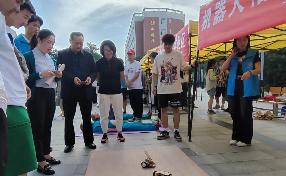 活动现场设置有“第二届劳动月实施方案”、“劳动教育实践品牌项目展示”等,以对beat365本届劳动月活动进行了详细的介绍;以及在图书馆西广场的两侧重点设有中华优秀传统文化展示体验区(包含鄠邑区农民画、社火微缩模型、剪纸、汉服体验等)、美食制作品尝区、垃圾分类游戏互动区、最美劳动者展示区、劳动救护(心肺复苏)体验区、机器人格斗展示区、无烟校园宣传区等七个劳动项目区域,涵盖了日常生活劳动、生产劳动、服务性劳动等劳动实践内容,各具特色的劳动实践项目吸引众多学生参与,营造了浓厚的劳动育人校园文化氛围,现场人潮涌动,气氛热烈。
