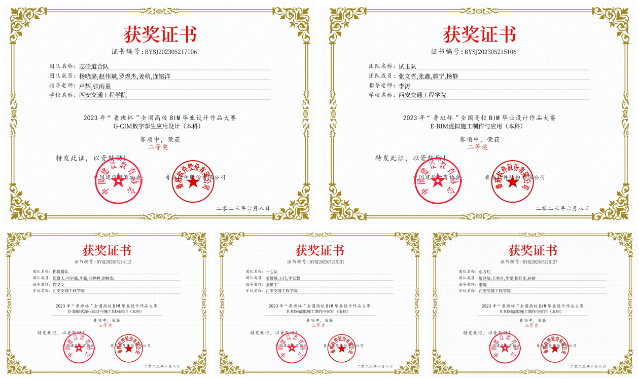 beat365学生在2023年“鲁班杯”全国高校 BIM 毕业设计作品大赛中荣获二等奖2项、三等奖3项