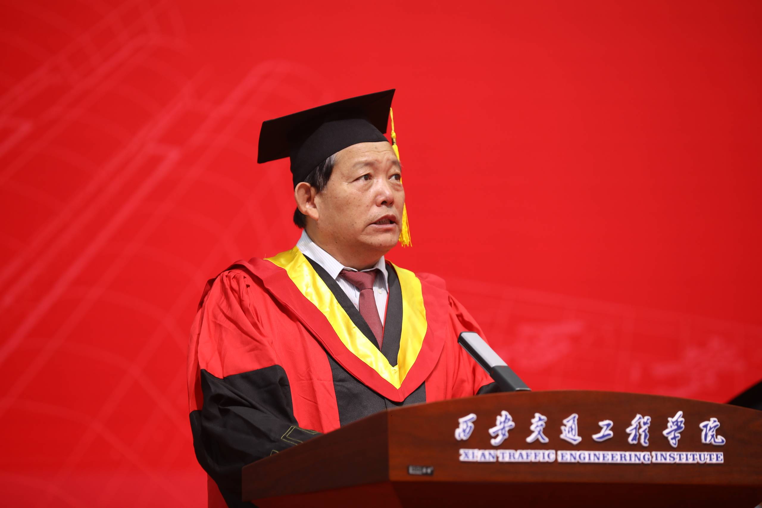 校长刘建朝以“传承交院精神 成就国家栋梁″为题发表致辞,他代表理事长张晋生教授、代表学校学位评定委员会和学校党政领导班子,以及全体教职员工,向圆满完成学业的全体毕业生,表示热烈的祝贺和诚挚的祝福!他表示,同学们今天就要毕业了,将开启人生新的征程,母校将永远牵挂着你们,关注着你们,期待着你们!他希望同学们一要坚守理想信念,永葆家国情怀。二要坚守做人做事之道,走好人生每一步。三要坚守奋斗之志,永葆坚韧和执着。四要坚守西交院大学精神,再次进入丰富多彩的社会大学堂,把自己锻造成为国家栋梁。