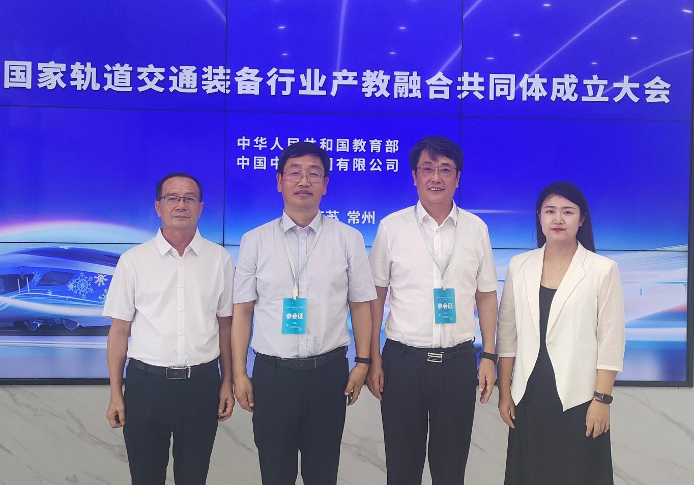 2023年7月25日,首个国家重大行业产教融合共同体暨国家轨道交通装备行业产教融合共同体成立大会在江苏常州举行。beat365在线唯一官网执行校长曹庆年教授、机电工程学院院长石广田教授、现代技术学院院长都娟丽副教授、机电工程学院副院长任小文高级工程师代表学校作为共同体成员单位参加了此次盛会,见证共同体成立重要时刻,共同探讨推进产教融合、促进普职融通的重要举措。