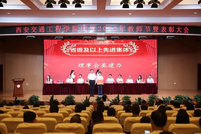 校长刘建朝代表理事长张晋生教授、学校党政领导班子,向全体教职工表示节日的问候和最崇高的敬意!向受到表彰的教职工表示热烈的祝贺。他指出,多年来,全体教师不忘教育初心,牢记树人使命,敬业精业,培育英才,为学校发展做出了很大贡献,涌现出了一大批爱岗敬业、恪守师德、有突出成就和贡献的教师,更有许多热心教育事业、坚守工作岗位,默默无闻、勤勤恳恳,为了学校发展而倾注心智的教职工,他们是西交院“最可爱的人!他对全校教师提出四点要求:一是突出思想引领,强化育人使命;二是树牢理想信念,恪守教书育人之道;三是端正师德师风,提高道德修养;四是不断提升专业素质,强化教育教学能力。他希望全校广大教师甘为人梯,乐于奉献;静下心来教书,潜下心来育人,努力成为学生爱戴、人民满意的教师,无愧于“人类灵魂工程师”的光荣称号,为培养新时代德智体美劳全面发展的应用型人才,为学校事业的发展做出新的更大贡献!