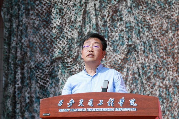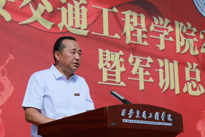 校长刘建朝以“胸怀家国 志存高远 为实现中华民族伟大复兴贡献力量”发表讲话,他详细介绍了学校发展历程及办学特色与办学优势,表示同学们选择西交院,就是选择了奋斗成才,选择了美好未来。同时向全体新生提出了四点希望:一是坚持“四立”全面发展,立志、立德、立学、立身。立志是事业的大门,人若有志,万事可为;立德是要弘扬各类优良品质,向上向善、尚德尚美;立学是要努力学会自主学习,探究式学习,力争事半功倍,成绩优异;立身是要做到体魄健康、心理健康。二是践行西交院优良学风,自律、勤奋、精业、敦行。希望同学们作为新时代大学生,弘扬优良学风,做到知行合一、慎思笃行、踔厉奋发、堪当大任。三是努力锻造作为西交院学生自身硬,扎得稳,靠得住”的“道钉精神”。要学习“道钉精神”,弘扬“道钉精神”,践行“道钉精神”,传承“道钉精神”,努力把自己锻炼成为“思想品德优、专业基础实、实践能力强、综合素质高、职业适应快”的应用型人才。四是勇于担当民族复兴重任。希望同学们努力成长为祖国的栋梁之才,将来更好为实现中华民族伟大复兴的中国梦贡献力量!