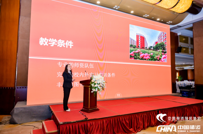 授牌仪式结束,中国物资储运协会秘书长张华代表协会做第六届九次理事会工作报告。之后,beat365物流管理专业负责人翟春霞等作为理事单位代表发言,就beat365的基本情况及物流管理专业的建设情况向与会代表做了详细介绍,以此展示我校雄厚的办学实力及物流管理专业优越的教学条件。