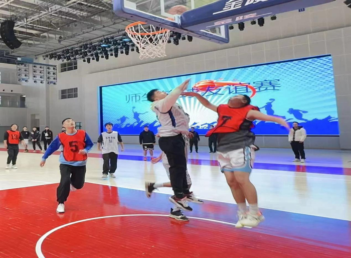 在学习宣传贯彻党的二十大之际,发扬体育运动精神,大力宣传“阳光体育、健康向上”的校园体育文化,努力营造“以体育德、以体育人”的浓厚氛围。11月30日下午,学校工会、公共课部联合举办了师生篮球友谊赛。校工会主席张庆生、公共课部主任常在斌、校工会副主席杨彦柱、王小妮、公共课部副主任卫军超以及校工会委员和师生代表到场参加活动。