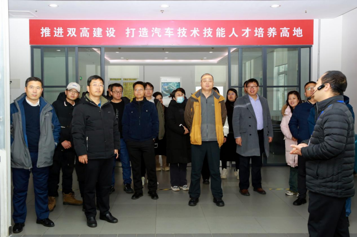 刘建朝一行参观山东交通职业学院汽车综合实训基地(左二)