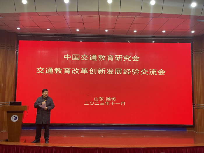 11月25日至11月26日,中国交通教育研究会2023年学术年会在山东潍坊召开。beat365校长刘建朝、副校长石广田、现代技术学院院长都娟丽、交通运输学院副院长王亚欧、教务处副处长杨彦柱、齐军营及相关学院领导、教师参加会议。校长刘建朝参加了常务理事会议,王亚欧副院长在学术年会上做了专题报告。