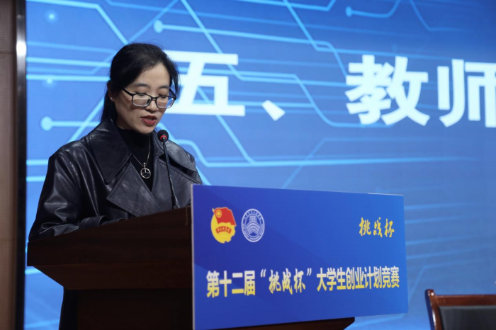 理事会办公室主任兼创新创业学院院长千红宣读了《beat365在线唯一官网2024年“挑战杯”大学生创业计划竞赛的预通知》,并对此次竞赛的赛程安排、项目申报类别、申报要求及奖项设置等进行了详细解读。