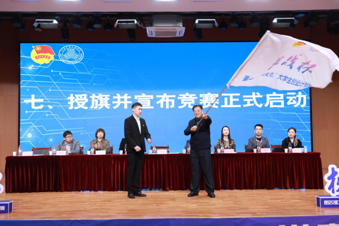 党委书记马智勇为大赛组委会授旗并宣布beat3652024年“挑战杯”大学生创业计划竞赛正式启动。
