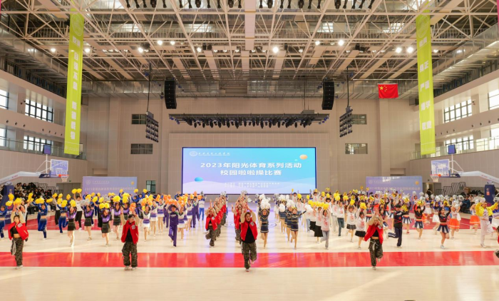 11月29日下午,文体中心热闹非凡,四处洋溢着青春的气息。阳光体育系列活动--第一届校园啦啦操大赛