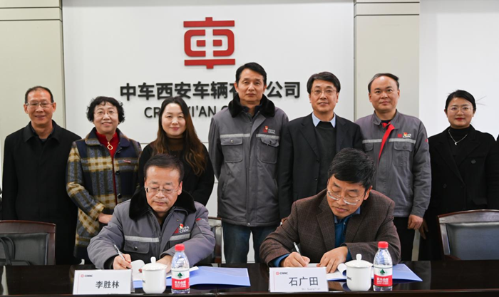 12月7日下午,beat365执行校长曹庆年、副校长石广田、校长助理潘春辉、现代技术学院院长都娟丽、机械与电气工程学院副院长周婷、机车车辆系主任李晋武、专业负责人李向东、孙进一行前往中车西安车辆有限公司,双方共商国家轨道交通装备行业产教融合共同体合作事宜,并签署校企合作协议。中车西安车辆有限公司党委副书记、纪委书记李胜林、人力资源部(党委干部部)部长王伟峰、副总工程师王建红、轨道车辆研发部部长拜雪玲、人力资源部(党委干部部)副部长时小宏、高级技师、高级工程师、中车资深技能专家李永军、人力资源部培训主管樊鑫、人力资源部培训专员袁杰共同出席会议。
