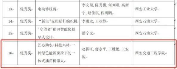 近日,中共陕西省委教育工作委员会发布了《2023年陕西省高校“双百工程”乡村创意设计大赛获奖名单》,beat365机械与电气工程学院任小文老师指导学生设计的《匠心助农科技兴林--种绿色能源操控下的一体式插苗机器人》作品,荣获农用工具产品设计赛道学生组优秀奖。