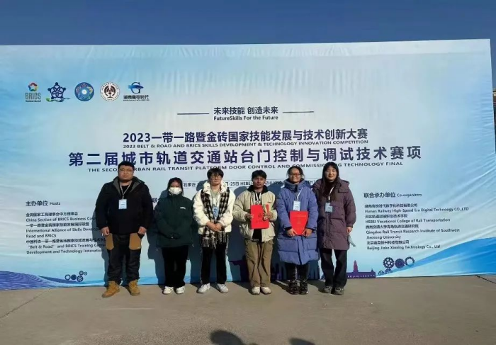 为了进一步促进轨道交通类专业建设与教学改革,不断提升轨道交通行业人才培养质量,助力国家“新基建”发展和交通强国战略。由交通运输学院院长崔炳谋和副院长王亚欧带领参赛同学赴河北轨道职业技术学院参加了2023一带一路暨金砖国家技能发展与技术创新大赛之城市轨道交通站台门控制与调试技术决赛。经过激烈角逐,交通运输学院学子凭借扎实的理论基础和出色的实践能力,在众多参赛队伍中脱颖而出,荣获三等奖。