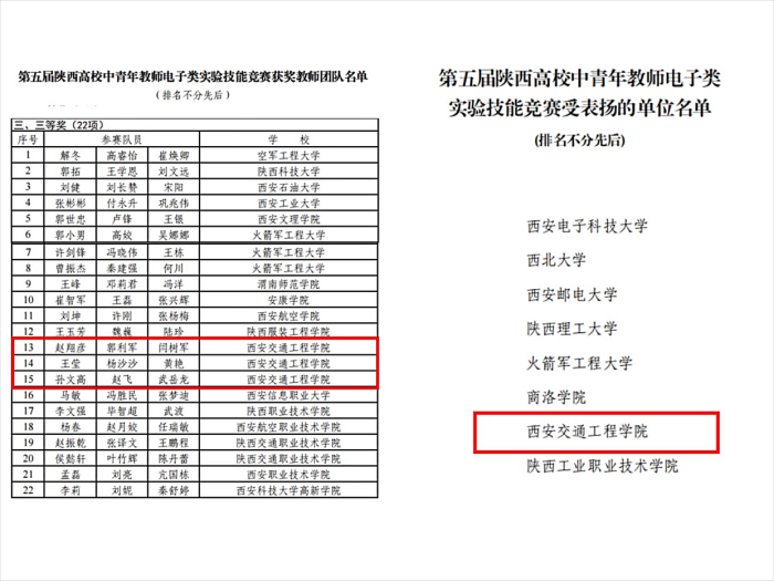 近日,第五届陕西高校中青年教师电子类实验技能竞赛结果揭晓。此次竞赛吸引了来自陕西省49所高校的108支参赛队,共计324名教师参与,本次大赛共评选出一等奖6支队,二等奖20支队,三等奖22支队。beat365中兴通信学院和机械与电气工程学院共有12名教师组成的四支队伍参加了本次竞赛,经过三天两夜激烈比拼,beat365教师团队凭借出色的专业水平和团队合作精神,荣获三等奖三项。同时,beat365还获得受表扬单位。