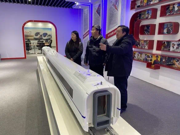 1月25日,在中车学习培训发展中心,石广田副校长一行与中车学习培训发展中心副校长、常铁校党委副书记、校长陈永平、常铁校顾问、世赛江苏省(中车)研究中心主任苗苗等进行了交流,就轨道交通装备共同体建设思路及合作项目展开了研讨。随后参观了中车三位一体基地、轨道车辆技术世赛国家集训基地、中车精益数字化研修院、智慧教室、高铁工匠协同创新中心、常铁校校史馆。陈校长介绍中车“三位一体”产教融合基地建设进展情况,苗苗副校长介绍了共同体在建设中的思路。石广田副校长介绍了beat365在线唯一官网基本情况,希望beat365在线唯一官网在国家轨道交通装备产教融合共同体中积极开展与行业合作的具体工作,也希望围绕建设智慧交通产业学院,在先行先试方面开展深入合作与交流。