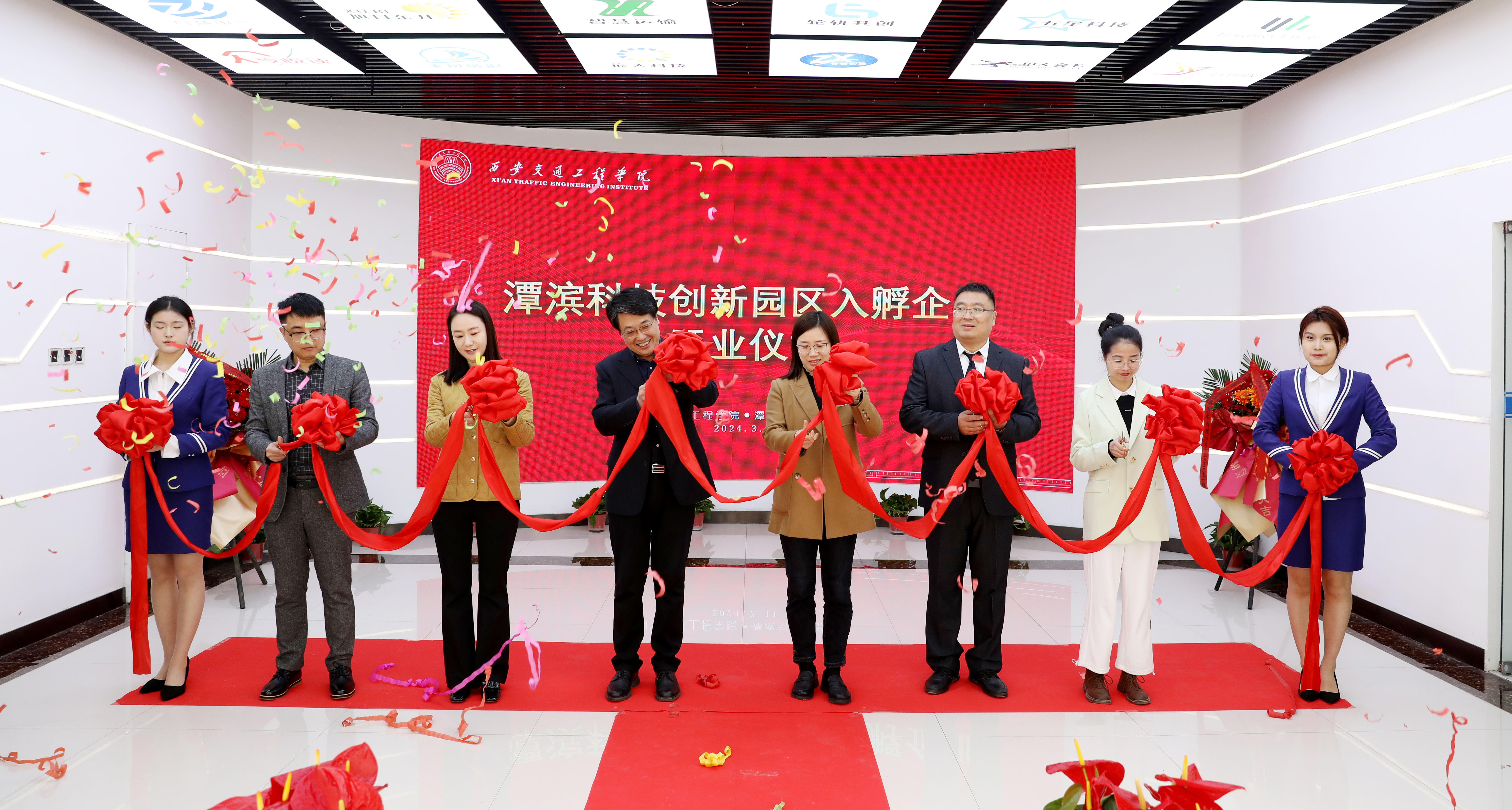 校长曹庆年宣布入孵企业开业并,与会领导为三家企业共同剪彩。
