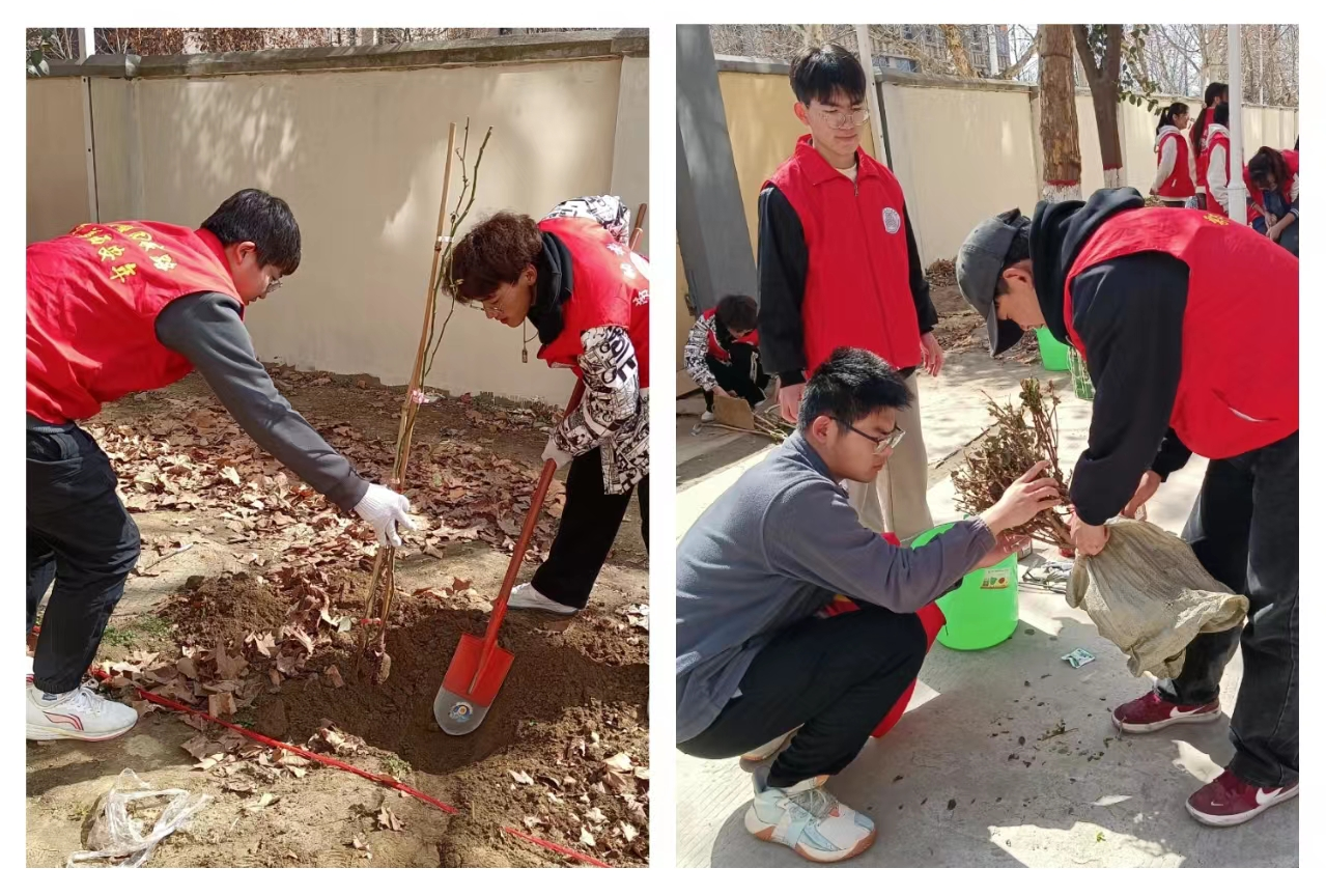 阳春三月,正值第46个植树节之际,为了加强beat365师生对生态环境的热爱、提升校园环境的治理,增强师生环保意识,开拓劳动教育实践平台,由学生处指导、劳动教育教研室组织,各二级学院协助,开展了以“红色教育、乡村振兴、绿色发展”为主题的植树节系列生态环保活动。
