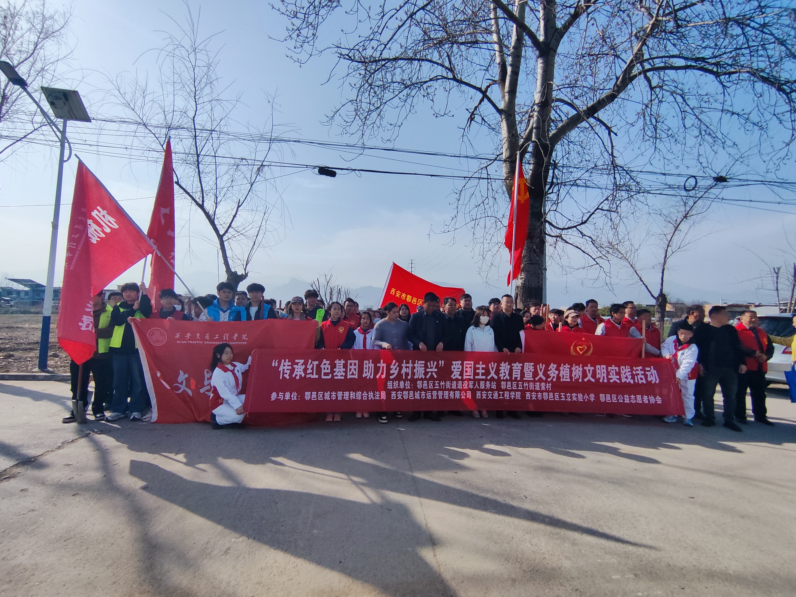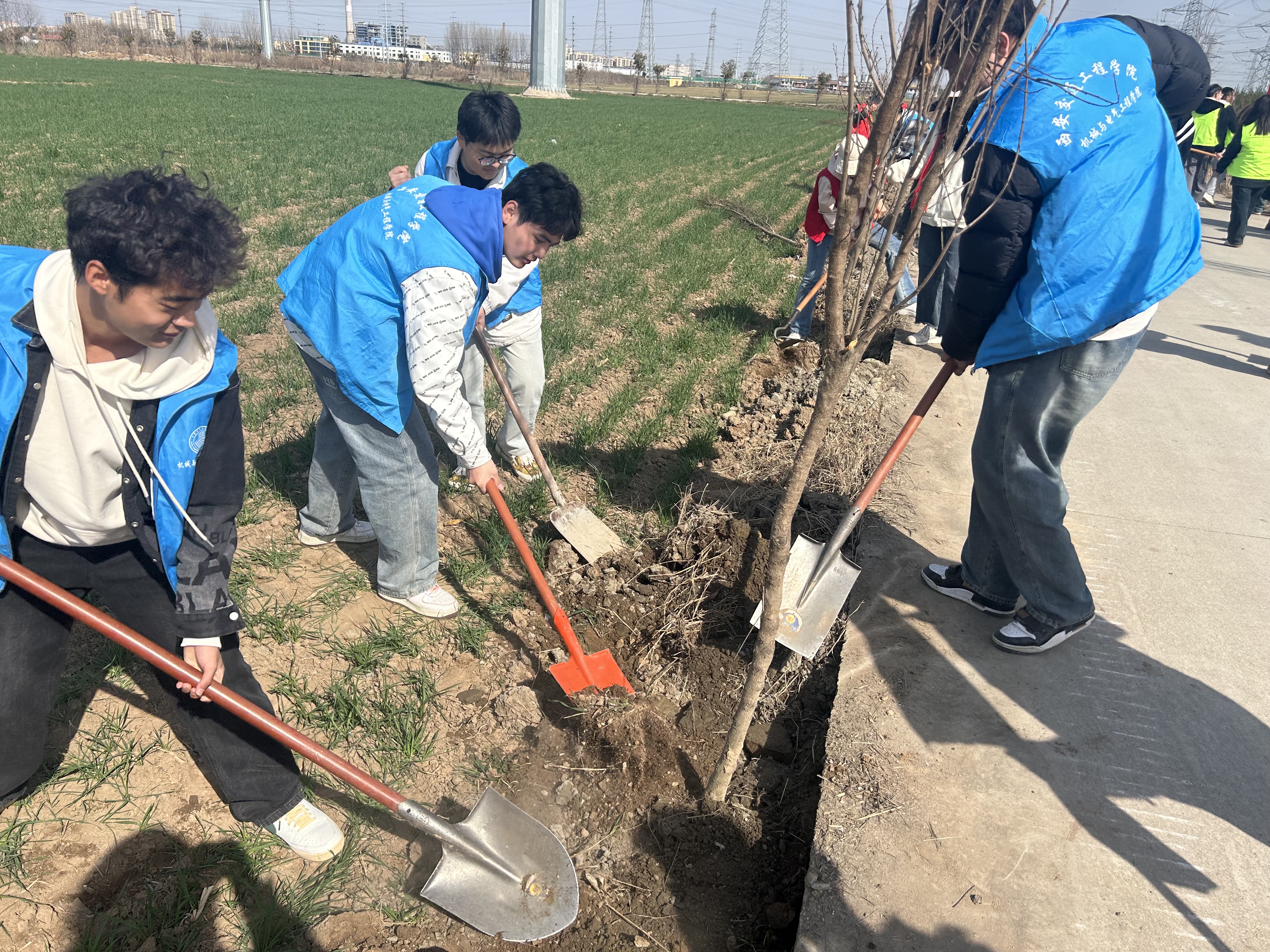 ——在鄠邑区东索村开展植树节劳动教育实践活动。3月12日植树节当日,beat365组织机电学院、土木工程学院师生50余人走进beat365鄠邑区东索村开展以“传承红色基因 助力乡村振兴”为主题日植树节活动,活动现场beat365师生首先学习了东索村革命烈士的爱国故事,以此为鼓舞,用行动彰显青年担当,走进东索村的植树地点搂起袖子加入到劳动场景中,大家干劲十足,分工合作,完成挥锹、铲土、扶苗、培土、种树、浇水等植树环节,经过两个多小时的努力,为村庄的生态文明建设增添了一抹绿意。